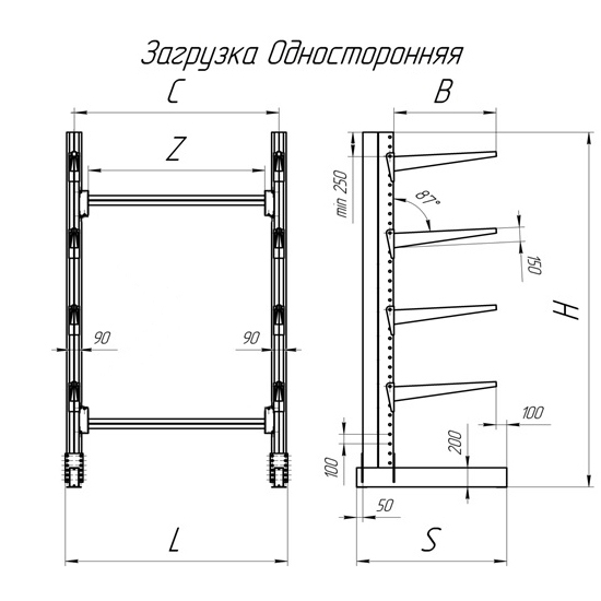 Консоль имеет угол наклона 13 градусов от горизонтали, чтобы обеспечить безопасность груза от падения с яруса.